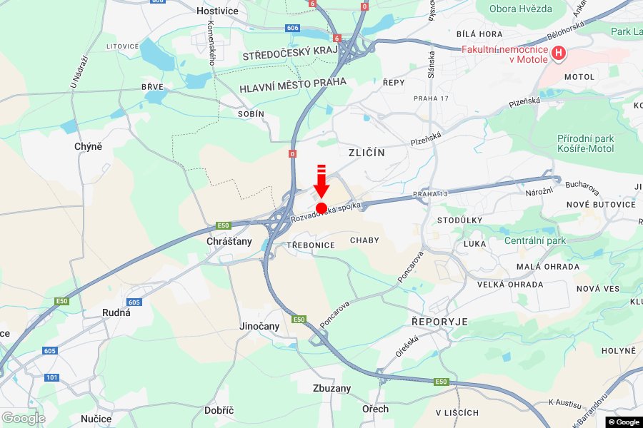 Praha 05 - Třebonice Rozvadovská spoj. OC METROPOLE výjezd sm.Plzeň,D5,zc